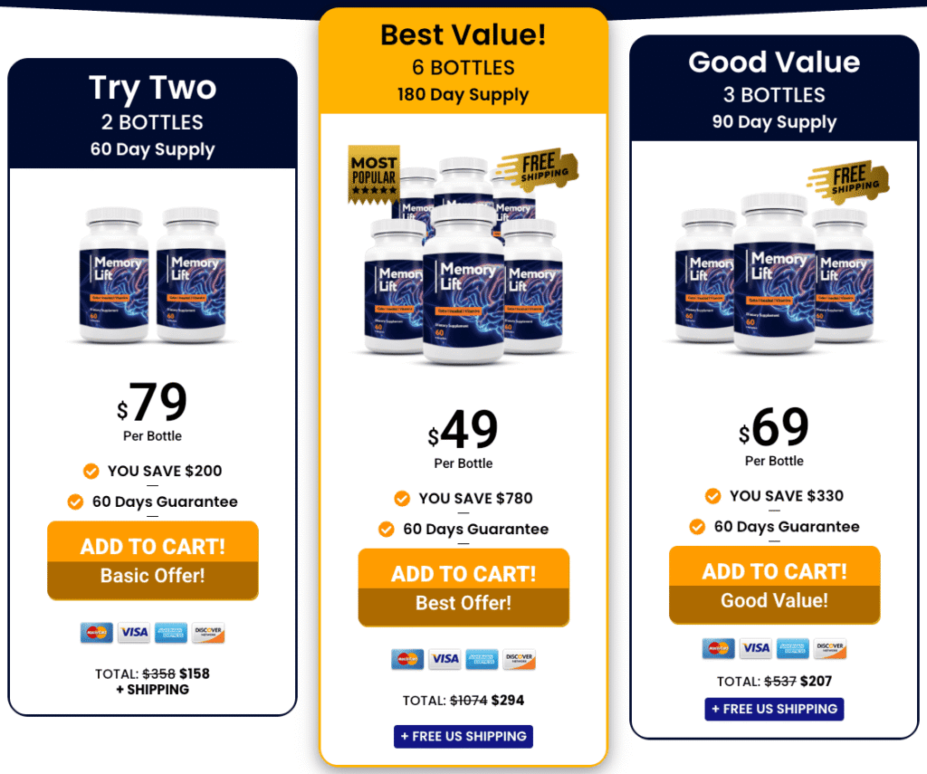 For authenticity and safety, the only place to order genuine Memory Lift is the official website. This guarantees you receive the real formula, fresh bottles, and full protection under the 60-Day Money-Back Guarantee.